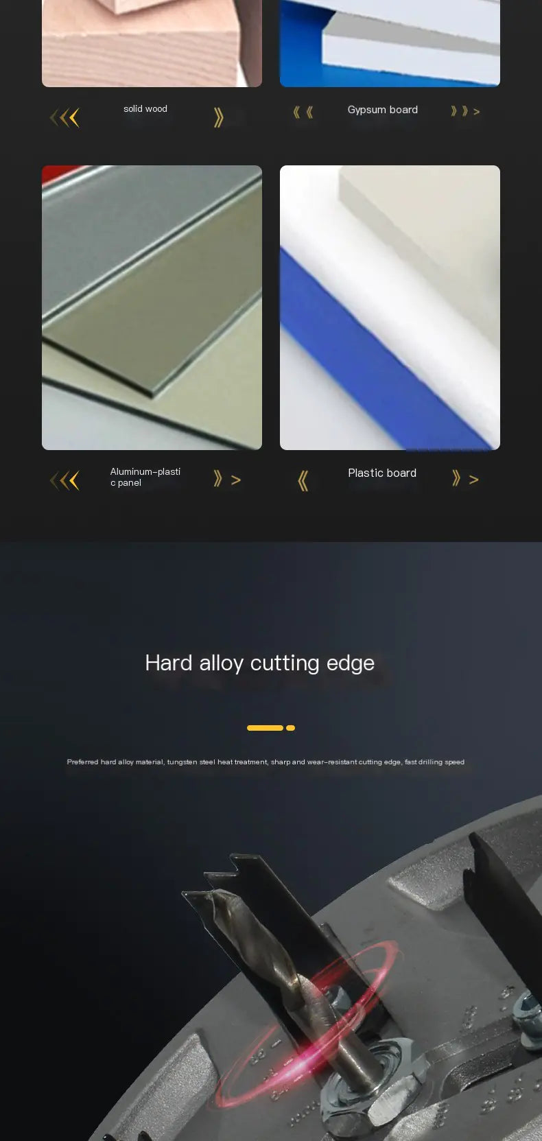 Transform your woodworking projects with our Adjustable Hole Opener, designed for precision and versatility. Whether you're working with gypsum board, plastic, or aluminum sheets, this tool is engineered to meet your needs effortlessly. With a cutting diameter ranging from 45mm to 130mm and a maximum cutting thickness of 30mm, you can tackle various tasks with just one tool. The lightweight design (only 0.45KG) ensures easy handling and maneuverability, making it the perfect addition to your toolkit. Its innovative design allows for a clamping capacity greater than 10MM, making it compatible with a wide range of electric drills. The compact packing size of 155*155*76mm means you can store it easily without taking up much space. Check out the images below to see the Adjustable Hole Opener in action and imagine the endless possibilities it brings to your DIY projects!